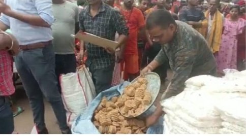 बासुकीनाथ । देश के प्रसिद्ध बासुकीनाथ धाम में श्रावणी मेला में पहुंचने वाले कांवरियों की आस्था के साथ लगातार खिलवाड़ किया जा रहा है। बाबा बासुकीनाथ की नगरी में आने वाले आगंतुक श्रद्धालुओं को इस क्षेत्र के चंद मुनाफाखोर और लालची दुकानदार घटिया व गुणवत्ता रहित सामग्री बेचकर उनके सेहत के साथ खिलवाड़ कर रहे हैं। बासुकीनाथ क्षेत्र में खाद्य सामग्री निरीक्षण दल के द्वारा पिछले कुछ दिनों से लगातार चलाए जा रहे अभियान के बावजूद इस क्षेत्र के चंद मुनाफाखोर दुकानदार अपनी हरकतों से बाज नहीं आ रहे हैं। इसी क्रम में बासुकीनाथ में खाद्य निरीक्षक दल के द्वारा चलाए गए छापेमारी अभियान में बड़ी मात्रा में नकली पेड़ा बरामद किया गया। जिसे मौके पर ही सैंपल के लिए नमूना संग्रह कर नकली पेड़ा को नष्ट कर दिया गया। इस मौके पर कुल आठ दुकान से करीब 5 टन नकली पेड़ा जप्त कर संबंधित दुकानदार पर एक लाख रुपये का जुर्माना भी लगाया गया।