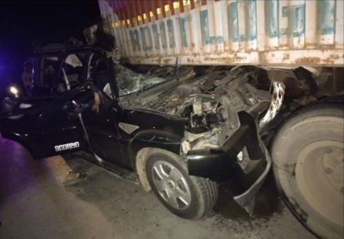 टक्कर इतनी जोड़दार थी कि स्कॉर्पियो कंटेनर में जा घुसी,,,,