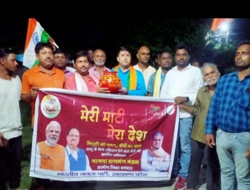 कतरास । आज विशेष अभियान के तहत मेरी माटी मेरा देश कार्यक्रम राजगंज मण्डल अंतर्गत बौआकला उत्तर पंचायत सात नंबर कॉलोनी शिव मंदिर के प्रांगण से मिट्टी संग्रह कर कार्यक्रम की शुरुआत की गई। आसपास के सभी कॉलोनी के घरों में जाकर मिट्टी संग्रह किया गया। इस कार्यक्रम में मुख्य रूप से टुंडी विधानसभा भाजपा के पूर्व प्रत्याशी सह कार्यक्रम के प्रभारी विक्रम पाण्डेय, महामंत्री संजीत सिंह, लक्ष्मण पासवान, युवा मोर्चा अध्यक्ष अजय साहनी, जसवंत सिंह, धनंजय मिश्रा, राजू रजक, सिंकु पांडे, डब्लू कुमार, सरजू विश्वकर्मा सहित भाजपा कार्यकर्ता मौजूद थे।