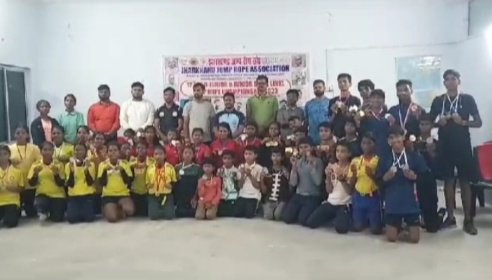 जामताड़ा । तीन दिवसीय 12वी राज्य स्तरीय सब जूनियर एवं जूनियर जम्प रोप प्रतियोगिता रांची जिला जम्प रोप संघ के तत्वाधान में वाई बी एम पब्लिक स्कूल सेक्टर 1 धुर्वा रांची में आयोजित प्रतियोगिता में झारखंड से कुल 14 जिला शामिल हुए। जिसमे जामताड़ा जिला जम्प रोप संघ के खिलाड़ियों ने कुल 41 मेडल, जीतकर जामताड़ा जिला को ओवरऑल चैंपियन का किताब दिलाया। इस प्रतियोगिता में 200 बच्चे, बच्चियां एवं 18 ऑफिसियल सामिल हुए। इस बात की जानकारी जिला जम्प रोप संघ के सचिव नंदन सिंह ने देते हुए बताया की कुल गोल्ड मेडल-23, सिल्वर मेडल-11 एवं 7 ब्रोंज मेडल जीतकर अपने जामताड़ा का नाम रौशन किया।