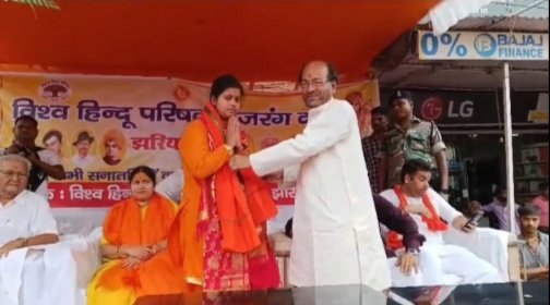 झरिया । धर्म की रक्षा करेंगे तो धर्म आपकी रक्षा करेगा। सनातन धर्म के मार्ग पर चल देश और समाज की सेवा के साथ सत्कर्म करें। उक्त बातें हिंदू शेरनी लाडली शरण ने झरिया के मेन रोड में विहिप और बजरंग दल की आम सभा के दौरान कहीं। इससे पूर्व भाजपा प्रदेश कार्यसमिति सदस्य रागिनी सिंह और हिंदू शेरनी लाडली शरण को तलवार भेंट किया गया. सभा के दौरान लाडली शरण ने कहा कि 500 वर्ष लगातार संघर्ष करने के बाद वर्ष 2024 में राम मंदिर की प्राण प्रतिष्ठा होने जा रही है। कहा कि सभी हिंदु अयोध्या जाकर भगवान राम के दर्शन करें। सनातन धर्म की रक्षा स्वयं भगवान करते हैं। संगठित हो कर अपने धर्म की गरिमा को हमें बनाए रखना चाहिए। कुछ विधर्मी समाज की बहन बेटियों के साथ अन्याय करते हैं। हिंदू बहनें लव जिहादियों से दुर रहें और बनना ही है तो झांसी की रानी और हिंदू शेरनी बने। शौर्य जागरण मौके पर झरिया में अनेक संस्थाओं की ओर से राम लला रथ का स्वागत किया गया। रागिनी सिंह ने कहा कि अयोध्या राम जन्मभूमि में प्रभू श्री राम जी का प्राणप्रतिष्ठा 22 जनवरी 2024 को किया जायेगा। विश्व हिन्दू परिषद द्वारा पूरे देश में शौर्य रथ यात्रा का आगमन होगा , आज झरिया में हुआ, जहां हजारों की संख्या में भाजपा कार्यकर्ताओ ने भव्य स्वागत किया। इस रथ यात्रा के माध्यम से हिंदुओ को बताया जा रहा कितने संघर्ष और बलिदान के बाद आराध्य श्री राम जी का मंदिर बन रहा है। मौके पर विहिप के जिलाध्यक्ष द्वारिका प्रसाद तिवारी, भाजपा नेत्री रागिनी सिंह,रतन लाल अग्रवाल, जिला मंत्री सोनू गिरी, अमित अग्रवाल, राजकुमार अग्रवाल बलदेव पांडे, सोनू सिंह, अरिंदम बनर्जी आदि मौजूद थे।