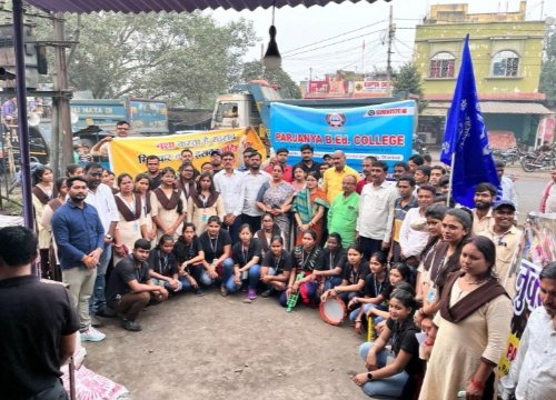 बलियापुर । बीबीएमकेयू विश्वविद्यालय के निर्देशानुसार आज पर्जन्य बी.एड कॉलेज के कोषाध्यक्ष एवं सिंदरी विधायक माननीय श्री इंद्रजीत महतो जी के धर्मपत्नी श्रीमती तारा देवी जी एवं प्राचार्य श्रीमती स्मृति नागि जी के नेतृत्व में छात्र-छात्राओं एवं शिक्षकों के सहयोग से MOCP में लोगों को नशा मुक्त हो समाज हमारा नुक्कड़ नाटक के माध्यम से लोगों को जागरूक किया गया । श्रीमती तारा देवी जी ने सम्बोधित करते हुए कही की शराब गुटखा पान मसाला से गंभीर बीमारियां होती है घर परिवार समाज उजड़ रही है इसको जड़ से ख़त्म करने की जरुरत है । मौके पर उपस्थित थे मंडल अध्यक्ष श्री मंटू रवानी जी मुखिया,निमाय महतो पूर्व मुखिया चुन्नी मजूमदार, भाजपा के वरिष्ठ नेता मनोज मिश्रा शैलेश सिंह विजय सिंह अरविंद खत्री मुक्तेश्वर महतो मिंटू साह व शत्रुघ्न महतो अशोक महतो तारा सिंह संदीप तिवारी काफी संख्या में जागरूक लोग उपस्थित थे ।