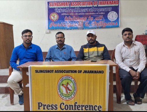 जामताड़ा । स्लिंगशॉट एसोसिएशन ऑफ झारखंड के तत्वाधान में गत 3 वर्षों से आयोजित भगवान बिरसा मुंडा जयंती एवं झारखंड स्थापना दिवस के अवसर पे भगवान बिरसा मुंडा कप सह तृतीय झारखंड राज्य स्लिंगशॉट गुलेल प्रतियोगिता का आयोजन जामताड़ा के रजवाड़ी स्थित इंडोर स्टेडियम में किया जा रहा है । इसके संदर्भ में आज नगर स्थित सेंट एंथोनी स्कूल के प्रांगण में स्लिंगशॉट एसोसिएशन ऑफ झारखंड के तत्वाधान में डॉ.डी .डी.भंडारी की अध्यक्षता मे एक प्रेस कॉन्फ्रेंस का आयोजन किया गया। जिसमें मुख्य रूप से स्लिंगशॉट एसोसिएशन ऑफ़ झारखंड के निर्देश दीपक दुबे , महासचिव भास्कर चांद, कोषाध्यक्ष सूरज कु.पासवान ,सदस्य रौनक राज एवं अनीश रंजन मुख्य रूप से उपस्थित थे।