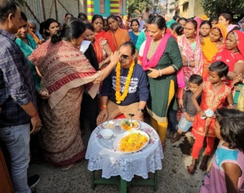 आगे विधायक जी ने अपनी बहनों को तोहफे के तौर पर सभी को वस्त्र भेंट की और सम्मान राशि भी दिया। सभी बहनों के बीच काफी खुशी देखने को मिली। उपहार पाकर बहनें काफी खुश दिखाई दी। सभी बहनों ने एक स्वर में कहा कि हमें भरोसा था कि हमारा भाई जरूर हमारे बीच आएंगे। अपने व्यस्त कार्यक्रम के बीच में से भी वह समय निकालकर हमारे बीच आए इसके लिए हम सभी उनके शुक्रगुजार हैं। मौके पर वर्षा बबीता प्रभावती देवी सुप्रिया मंडल अनीता देवी अंजू देवी पारो देवी प्रमिला डे झूमा चक्रवर्ती रेनू शाही अनीता मंडल बसंती देवी रीता देवी सोनी देवी पुष्पा मंडल माला देवी सिंकु देवी लक्ष्मी देवी सुलेखा देवी बिंदु देवी शिखा देवी मोना साह संध्या दास सहित अन्य मुख्य रूप से उपस्थित थे।