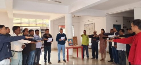 बलियापुर । प्रखंड कार्यालय में रविवार को अधिकारियों, कर्मियों व जनप्रतिनिधियों ने संविधान दिवस मनाया। डॉक्टर भीमराव अंबेडकर के तस्वीर पर माल्यार्पण किया। सभी ने शपथ लिया। मौके पर बीडीओ रामप्रवेश कुमार, एमओ मदन मोहन, 20 सूत्री प्रखंड उपाध्यक्ष लक्ष्मी नारायण महतो, मुखिया दिलीप कुमार महतो, पंसस दिवाकर महतो, बीपीआरओ मोहम्मद आलम, रवि चौरसिया, कमल कुमार प्रमाणिक, राजेंद्र प्रसाद महतो, मनोज कुमार, शंकर महतो आदि मौजूद थे।