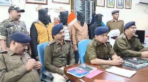 गुरुवार को पुलिस मुख्यालय में एस पी अनिमेष नैथानी ने प्रेस वार्ता कर बताया कि नारायणपुर और करमाटांड़ के कुछ स्थानों में छापामारी किया गया जहां से चार सायबर साईबर अपराधी क्रमशः (1) सुरज दास, उम्र 27 वर्ष, पिता दुखन दास, ग्राम लोकनियाँ, थाना नारायणपुर, जिला जामताडा (2) राजेश रंजन रजक, उम्र 31 वर्ष, पिता सुशील रजक, ग्राम खरकोकुण्डी, थाना नारायणपुर, जिला जामताडा (3) मोहन रजक, उम्र 19 वर्ष, पिता संतोष रजक, ग्राम रंगा सिरसा, थाना पाथरोल, जिला देवघर (4) फारूक अंसारी, उम्र 25 वर्ष, पिता गुही मियाँ, ग्राम बारादहा, थाना करमाटौड़, जिला जामताड़ा को गिरफ्तार किया गया। इनके पास से (1) 14 मोबाईल, (2) 28 सिमकार्ड, (3) 4 एण्टी०एम० कार्ड,(4) 2 पासबुक बरामद हुआ है। इस संबंध में इनके विरूद्ध जामताड़ा साईबर अपराध थाना कांड संख्या 65/23 दिनांक 29.11.2023 धारा 414/419/420/467/468/471/120 (B) भा०द०वि० एवं 66 (B) (C) (D) आई०टी० एक्ट के अंतर्गत कांड दर्ज किया गया है। गिरफ्तार अभियुक्त को जेल भेजा जा रहा है।