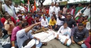 जामताड़ा । केंद्र सरकार की अग्निपथ योजना का आज जामताड़ा में भी विरोध प्रदर्शन शुरू हुआ। कांग्रेस के जिला अध्यक्ष मुक्ता मंडल के नेतृत्व में विधायक डॉक्टर इरफान अंसारी संग सैंकड़ों की संख्या में कार्यकर्ता विधायक आवास से शव यात्रा निकालकर सुभाष चौक पहुंचे जहां पर लगभग सड़क जाम किया और फिर जमकर नारेबाजी करते हुए पुतला दहन किया। इस दौरान सुभाष चौक पर लगभग 2 घंटे तक अफरा-तफरी का माहौल बना रहा और कांग्रेसियों ने जमकर नारेबाजी किया और अग्निपथ योजना का विरोध किया।