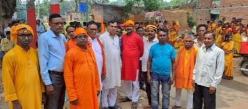 बलियापुर । बाघमारा चालक टोला में बजरंगबली मंदिर स्थापना के वार्षिक महोत्सव पर मंगलवार को बाघमारा पंचायत के सभी टोलों में भव्य कलश यात्रा निकाली गई। जिसमें सैकड़ों महिलाएं कलश लेकर मंदिर प्रांगण से बाघमारा ब्राह्मण तालाब पहुंचे। कलश में जल भरने के साथ कलशयात्रा प्रारंभ हुई। मंदिर प्रांगण में पुजारी सपन चक्रवर्ती व हिब्रू चक्रवर्ती ने पूजा अर्चना की। मौके पर भाजपा ग्रामीण जिलाध्यक्ष घनश्याम ग्रोवर, पूर्व मुखिया संजीत गोराई, पंसस संतोष कुमार महतो, उप मुखिया विवेक महतो, गोपाल चालक, अशोक गोराई, राकेश बाउरी, अजय बाउरी, मेघनाथ बाउरी, पिनकेश बाउरी, मनोज बाउरी, गोरांग चालक, अभय चालक, मिलन बाउरी, मुकेश बाउरी, अनिल चालक आदि मौजूद थे।
