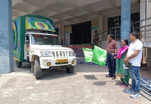 जामताड़ा । समाहरणालय परिसर से उप विकास आयुक्त निरंजन कुमार एवं जिला जनसंपर्क पदाधिकारी रश्मि सिन्हा ने संयुक्त रूप से हरी झंडी दिखाकर टीवी स्क्रीन, वीआर यंत्र, ध्वनि विस्तारक यंत्र युक्त जागरूकता रथ को रवाना किया। जागरूकता रथ को हरी झंडी दिखाते हुए उप विकास आयुक्त निरंजन कुमार ने बताया कि यह जागरूकता रथ जिले के सभी प्रखंड क्षेत्रों में भ्रमण कर आम लोगों को आडियो–वीडियो विजुअल के माध्यम से सरकार द्वारा चलाई जा रही जनकल्याणकारी योजनाओं के बारे में जानकारी प्रदान करेगा ताकि अधिक से अधिक लोग इस बारे में अवेयर होकर लाभ उठा सके।