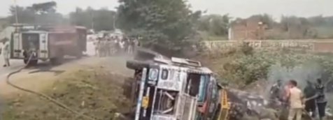 कतरास । बुधवार की सुबह सेना का सामान लेकर जा रहे चलती ट्रक में अचानक आग लग गई, देखते ही देखते आग ने भीषण रूप ले लिया और आग की लपटें काफी ऊंची उठने लगे । घटना के बाद क्षेत्र में अफरा- तफरी मच गई । घटना महुदा मोड़ के समीप फॉर लेन की है । ट्रक में सेना का कबाडी बैटरी समेत अन्य कबाड़ का सामान लदा था । मौके की नजाकत को देखते हुए ट्रक चालक ने समझदारी दिखाते हुए ट्रक को सड़क किनारे पलटी मार दिया और खुद ट्रक से नीचे उतर गया । चालक ने घटना की जानकारी दूरभाष पर अपने वरीय अधिकारियों को दे दी फिर, आग बुझाने के प्रयास में जुट गया । घटना के बाद मौके पर स्थानीय लोगों की भीड़ जुट गई । सूचना मिलते ही फायर ब्रिगेड की दो गाड़िया मौके पर पहुंची और आग बुझाने में जुट गई । जानकारी के अनुसार उक्त ट्रक में सेना का कबाडी बैटरी और ट्यूब आदि था । जो रांची से लेकर पश्चिम बंगाल जा रहा था।