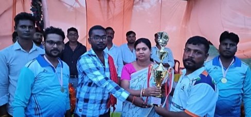 बलियापुर : कुसमाटांड़ में एसएस क्लब नीमटांड़ द्वारा आयोजित एकदिवसीय क्रिकेट टूर्नामेंट के फाइनल मैच बुधवार को लीजेंड्स क्लब कुसमाटांड़ ने नीमटांड क्लब को 9 रन से पराजित कर ट्रॉफी पर कब्जा कर लिया। इस क्रिकेट टूर्नामेंट में कुल आठ टीमों ने भाग लिया। मुख्य अतिथि जिला परिषद सदस्य उषा महतो ने विजेता एवं उपविजेता टीम के खिलाड़ियों को ट्रॉफी प्रदान कर सम्मानित किया। उन्होंने कहा कि सुदूर ग्रामीण इलाकों में प्रतिभागियों की कमी नहीं है उसे निखारने की जरूरत है। यहां की बालक व बालिकाएं अन्तर्राष्ट्रीय लेबल पर परचम लहरा रहे हैं। आशीष महतो, पूर्व मुखिया मधुसूदन मोदक हरिपद रवानी, महेंद्र रवानी ने भी खिलाड़ियों के बीच पुरस्कार वितरण किया। क्रिकेट प्रतियोगिता कार्यक्रम को संपन्न कराने में आयोजन समिति के कप्तान अभिषेक, मिंकू , दीपक, कप्तान मधू सुदन मोदक, विकास, राजा, रंजन, मुन्ना, आशीष, विवेक, सागर आदि का सराहनीय योगदान रहा।