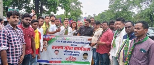 बलियापुर: राज्य में व्याप्त भ्रष्टाचार ओर प्रशासनिक उदासीनता के खिलाफ शनिवार को बलियापुर प्रखंड व अंचल कार्यालय के मुख्य गेट पर आजसू पार्टी ने हल्ला बोल कार्यक्रम आयोजित किया। इसके पूर्व भिखराजपुर पुलिया के पास से सिंदरी विधानसभा प्रभारी राधेश्याम गोस्वामी के नेतृत्व में रैली निकाली गई। राज्य सरकार के खिलाफ नारेबाजी करते हुए प्रखंड कार्यालय परिसर पहुंचे। सभा को संबोधित करते हुए वरीय अधिवक्ता राधेश्याम गोस्वामी ने झारखंड सरकार के कामकाज की तिखी आलोचना की। कहा कि झामुमो नेतृत्व वाली इस सरकार को उखाड़ फेंकने की जरूरत है। वहीं आजसू जिलाध्यक्ष मंटू महतो ने कहा कि झारखंड सरकार के गलत नीति के कारण आम जनता को उसका हक अधिकार नहीं मिल रहा है। जमीन संबंधी कागजातों का निष्पादन नहीं किया जा रहा है। किसानों के बीच खाद्य एवं बीच की आपूर्ति समय पर नहीं किए जाने से किसान परेशान हैं। पेंशन धारियों का समय पर भुगतान करने व जनसमस्याओं का समाधान करने की बातें कही। मौके पर प्रखंड अध्यक्ष परमेश्वर महतो, केंद्रीय सदस्य बलराम महतो, मनोज रवानी, ओबीसी मोर्चा के प्रखंड अध्यक्ष गोपाल महतो, रोहित रवानी, जादू महतो, रजनी ताती, कुल्लू चौधरी, पवन शर्मा, बोबी पांडेय, रिंकू खान, विरेन्द्र निषाद, मनोज महतो, संतोष कुशवाहा, गब्बर अंसारी, अजय रजक, हरेराम रवानी आदि मौजूद थे। 12 सूत्री मांगों का ज्ञापन सीओ को सौंपा।