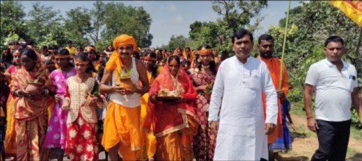 जामताड़ा । सोमवार को जामताड़ा प्रखंड अंतर्गत ऊपरबांधी, दक्षिण बहाल में काली मंदिर प्राण प्रतिष्ठा हेतु भव्य कलश शोभायात्रा निकाली गई। इस कलश शोभायात्रा में मुख्य अतिथि के रूप में भाजपा वरिष्ठ नेता वीरेंद्र मंडल सम्मिलित हुए। काली मंदिर प्राण प्रतिष्ठा हेतु सैकड़ो की संख्या में माताएं बहनों ने अपने माथे पर कलश लेकर और श्रद्धालु जन हाथ में ध्वजा पताके लेकर भक्ति पूर्ण माहौल में गाजे बाजे के साथ कलश यात्रा में सम्मिलित हुए। भाजपा नेता वीरेंद्र मंडल को अपने बीच पाकर ग्रामीणों के बीच खुशी की लहर देखी गई। पूरे वैदिक मंत्रोचार और पूजन विधि विधान के साथ पास के ही नदी में सभी कलशो में जल भरकर माताए बहनो ने नवनिर्मित काली मंदिर तक लाया गया।