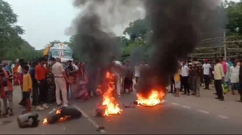 जामताड़ा । नारायणपुर मुख्यालय में पुल के नीचे पानी में तैरता हुआ लाश मिलने के बाद परिवार वालों ने हत्या का आरोप लगाया है और आक्रोशित लोगों ने शाम को गोविंदपुर साहिबगंज हाईवे को नारायणपुर चौक में जाम कर दिया। परिजनो का कहना है कि मृतक निमिया माहरा की हत्या कर उसकी लाश को पानी में फेंक दिया गया था। पुलिस अभिलंब आरोपी को गिरफ्तार करने और कार्रवाई की मांग को लेकर स्थानीय लोग एवं परिजनों ने नारायणपुर चौक में टायर जलाकर सड़क जाम कर दिया। जिसके बाद स्थानीय पुलिस पहुंची और भीड़ को समझा बूझकर हटाया गया। वही प्रखंड विकास पदाधिकारी मुरली यादव ने परिजनों को थाने में बुलाकर सरकारी सभी सुविधा देने का आश्वासन दिया।