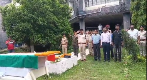 जामताड़ा । बीते कल सोमवार को मिहिजाम थाना क्षेत्र के ढेकीपङा नेशनल हाईवे 419 सड़क में 29 वर्षीय जैनेंद्र रजक की सड़क दुर्घटना में मौत हो गई। बताते चलें कि जैनेंद्र रजक जामताड़ा स्पेशल ब्रांच में एस आई के पद पर पदस्थापित थे। जो ड्यूटी के लिए अपने आवास डोमदहा से पल्सर मोटरसाइकिल से जामताड़ा जा रहे थे और इसी क्रम में ढेकीपङा में विपरीत दिशा से तेज रफ्तार से आ रही पिकअप वेन ने उसे ठोकर मार दिया, जिससे जैनेंद्र रजक की घटना स्थल पर ही मौत हो गई थी। आज समाहरणालय स्थित पुलिस मुख्यालय के बाहर में उनके शव को श्रद्धांजलि दी गई और शोक व्यक्त किया। जिसमें जामताड़ा एस पी अनिमेष नैथानी, डी डी सी निरंजन कुमार, स्पेशल ब्रांच के अधिकारी समेत अन्य पुलिस अधिकारियों के साथ पुलिस के जवान शामिल थे। इसके बाद उनके शव को शलामी दी गई। बताते चलें कि मृतक जैनेंद्र रजक के पिता राजेन्द्र रजक ने मिहिजाम थाना में लिखित रूप से आवेदन दिया है। जिसमें उन्होंने बताया कि पिकअप वाहन जिसका संख्या WB 37 E 5966 का ड्राईवर तेजी एवं लापरवाही से अपने वाहन को चलाते हुए मेरे पुत्र को धक्का मार दिया, जिससे मेरे पुत्र की घटनास्थल पर ही मृत्यु हो गई है। घटना को अंजाम देने वाले वाहन ड्रावर पर मामला दर्ज कर कड़ी करवाई की मांग की है।