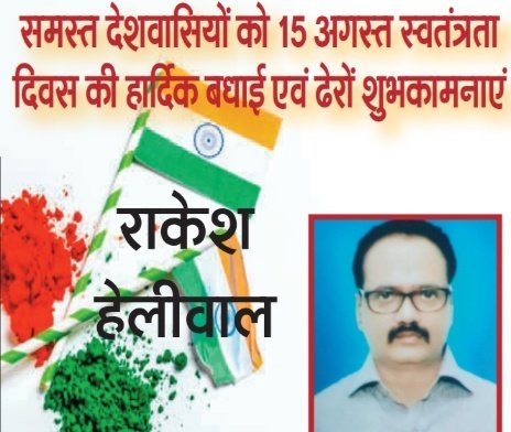 राकेश हेलीवाल सचिव धनबाद जिला मारवाड़ी सम्मेलन की ओर से सभी देशवासियों को 78 वें स्वतंत्रता दिवस की हार्दिक बधाई एवं ढेरों शुभकामनाएं ।