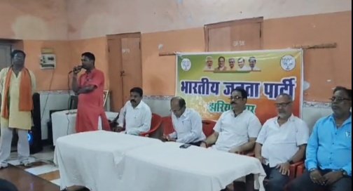 झरिया । भारतीय जनता पार्टी झरिया नगर में आज दिनांक 18 अगस्त 2024 को नवनिर्वाचित झरिया नगर अध्यक्ष श्री अवधेश साहू जी के अध्यक्षता में 23 अगस्त 2024 के युवा जन आक्रोश रैली को लेकर बैठक की गई जिसमें कार्यकर्म प्रभारी भाजपा नेत्री श्रीमती रागिनी सिंह जी ने कहा कि झारखण्ड सरकार ने महिलाओं को छलने का काम किया है भाजपा प्रदेश कार्यसमिति सदस्य राजकुमार अग्रवाल जी ने कहा है हेमंत निकम्मी सरकार को युवा जन आक्रोश रैली के माध्यम से निकम्मी सरकार को उखाड फैंकना है भाजपा जिला उपाध्यक्ष विष्णु त्रिपाठी जी ने कहा कि चुनाव के समय ग्रेजुएट युवा छात्रों से 5000/-,7000/-(पाँच हजार,सात हजार)रूपये देने का जो वादा किया उन वादों के पूरा नहीं किया,कार्यकर्म सह प्रभारी स्वरूप भट्टाचार्य ने युवा जन आक्रोश रैली को सफल बनाने की रूप रेखा बताएं,पूर्व झरिया नगर अध्यक्ष अरिंदम बनर्जी, सत्यदेव सिंह,देवनारायण सिंह,विष्णु प्रधान,मोहन वर्मा,वीरेन्द्र शर्मा,अशोक प्रसाद बर्णवाल, अजय वर्मा,लोकनाथ सिंह,अरुण जयसवाल, निर्मल अग्रवाल, अमित साव,विश्वनाथ साव,रामप्रकाश सिंह,मुन्ना पांडेय,चन्दन बर्णवाल, अर्जुन सहनी, मोसिन खान,इमरान शेख,वीरेन्द्र भुईंया, सोनू सिंह,दिलीप रवानी,पिंकू चन्द्रवंसी,टिंकू मोदक,देवदत्त सहाय, मन्तु कुमार इंदु,अर्णव कुमार सिंह,संजय साव,राजेश अग्रवाल,अमरदीप सिंह,राजराम चौहान,रोहित बाल्मीकि, विकास कुमार तारकनाथ दत्त जयप्रकाश गुप्ता दीपक सिंह अनुराग कुमार विशाल कुमार रोहित कुमार सुजल कुमार दुर्गा प्रसाद साहू सुधीर कुमार गुप्ता गौतम सेन विनोद साहू,सुनील रवानी अन्य लोग उपस्थित थेविशाल कुमार कार्यकर्म का धन्यवाद ज्ञापन शिवू अग्रवाल ने किया ।