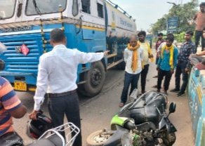 धनबाद । शहर के बैंक मोड़ थाना क्षेत्र अंतर्गत नया बाजार ओवरब्रिज पर बुधवार की सुबह तेल टैंकर ने स्कूटी को टक्कर मार दी। जिसमें एक व्यक्ति के घायल होने की सूचना है। वही स्कूटी पूरी तरह क्षतिग्रस्त हो गई है। घटना के संबंध में बताया जाता है कि तेल टैंकर ने स्कूटी सवार को पीछे से टक्कर मार दिया। जिससे स्कूटी अनियंत्रित होकर सड़क किनारे के फुटपाथ से टकरा गई और सवार गिर पड़ा। जिसके बाद स्थानीय लोगों की काफी भीड़ इकट्ठा हो गई। लोगों ने घायल स्कूटी सवार को पास के नर्सिंग होम में इलाज के लिए भेजा। जबकि खबर लिखे जाने तक क्षतिग्रस्त स्कूटी घटनास्थल पर ही गिरी हुई थी।