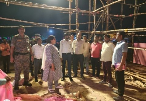 जामताड़ा । 5 अक्टूबर को दुर्गा पूजा को लेकर उपायुक्त सह जिला दंडाधिकारी कुमुद सहाय परियोजना निदेशक ITDA जुगनू मिंज, अनुमंडल पदाधिकारी अनंत कुमार सहित अन्य के द्वारा शहरी क्षेत्र के सभी पूजा पंडालों का निरीक्षण किया। उपायुक्त द्वारा यज्ञ मैदान पूजा पंडाल, चाकड़ी पूजा पंडाल, कोर्ट रोड पूजा पंडाल, शाहना पूजा पंडाल, गांधी मैदान पूजा पंडाल, शरखेलडीह पूजा पंडाल, मिहिजाम स्थित पूजा पंडालों सहित अन्य पूजा पंडालों का निरीक्षण किया गया। निरीक्षण के दौरान उपायुक्त ने पूजा समिति के अध्यक्ष सचिव एवं सभी पदाधिकारियों को निर्देश दिया कि सुरक्षा के दृष्टिकोण से विद्युत शॉर्ट सर्किट रोकने को लेकर पूजा पंडाल में सभी उपाय करेंगे साथ ही बचाव हेतु पुख्ता इंतजाम रखेंगे। दुर्गा पूजा के दौरान होने वाले भीड़ को देखते हुए पूजा कमेटी अपने स्तर से वालंटियर तैनात रखेंगे ताकि कहीं पर किसी प्रकार की दिक्कत नहीं हो। पूजा कमेटी के लोग प्रशासन को सहयोग करेंगे ताकि जिले में दुर्गा पूजा शांतिपूर्ण भक्ति पूर्ण वातावरण में संपन्न कराया जा सके। पूजा पंडाल में सीसीटीवी अनिवार्य रूप से लगाएंगे एवं सभी गतिविधि को कैमरा में कैद करेंगे। कहीं से किसी प्रकार की सूचना मिलेगी तो उस सूचना को संबंधित पदाधिकारी/ पुलिस पदाधिकारी को जानकारी देंगे।