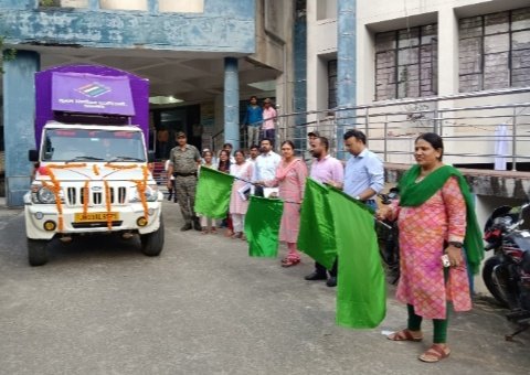 जामताड़ा । आसन्न विधानसभा चुनाव 2024 के निमित्त जिले में शत प्रतिशत मतदान सुनिश्चित हो, इसी उद्देश्य से आज दिनांक 23 अक्टूबर को समाहरणालय परिसर से जिला निर्वाचन पदाधिकारी सह उपायुक्त कुमुद सहाय ने वरीय पदाधिकारियों संग समाहरणालय परिसर से हरी झंडी दिखाकर वीआर एलईडी स्क्रीन यंत्र, ध्वनि विस्तारक यंत्र युक्त जागरूकता रथ को रवाना किया।