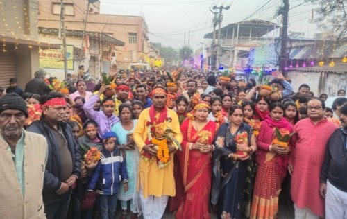 कलश विसर्जन यात्रा के आयोजन में हजारों महिलाओं और बहनों ने पूरे विधि-विधान से भाग लिया।