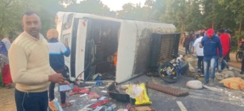 हजारीबाग/ विष्णुगढ़ । रविवार की देर शाम हजारीबाग के विष्णुगढ़ में एक भीषण सड़क हादसा हुआ । जहां एक बस का टायर ब्लास्ट कर गया और वह अनियंत्रित होकर पलट गई, घटना के बाद क्षेत्र में अफरा- तफरी मच गई । यह भीषण हादसा विष्णुगढ़ थाना क्षेत्र के नरकी में हुआ। यात्रियों से भरी एक बस अनियंत्रित होकर पलट गई। इस घटना में तीन यात्रियों की घटनास्थल पर ही मौत हो गई। जबकि दर्जन भर यात्री गंभीर रूप से घायल है। जिन्हें शेख भिखारी मेडिकल कॉलेज अस्पताल और बोकारो बेहतर इलाज के लिए भेजा गया है। मृतकों में एक की पहचान विष्णुगढ़ थाना क्षेत्र के नरकी निवासी मंगर कमार के रूप में हुई है। अन्य दो की शिनाख्त नहीं हो पाई है। बताया जाता है कि ‘नेहा’ नामक बस जेएच 02 वी 0543 हजारीबाग से फुसरो (बोकारो) जा रही थी।