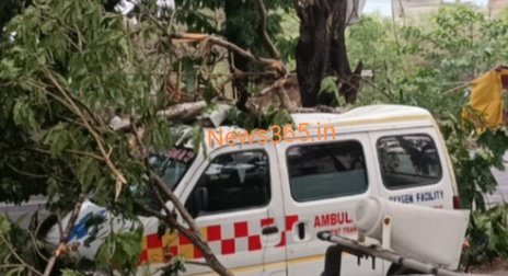 धनबाद । शहर के स्टील गेट के समीप SNMMCH अस्पताल गेट के बाहर खड़ी एम्बुलेंस पर पेड़ गिरने से क्षतिग्रस्त हो गई। एम्बुलेंस में पांच लोग बैठे थे।जानकारी के अनुसार रोड किनारे कुमुद सिंह का एम्बुलेंस खड़ा था। एम्बुलेंस में वकील यादव, संतोष कुमार, मास्टर कुमार, राजा कुमार सहित एक अन्य लोग बैठे हुए थे। तभी अचानक जोर से एम्बुलेंस के ऊपर पेड़ टूट कर गिर पड़ा। जिससे एम्बुलेंस में बैठे लोग बाल-बाल बच गए। वही वाहन बुरी तरह क्षतिग्रस्त हो गया है।