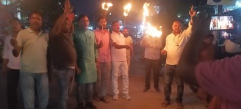 जामताड़ा । पहलगाम में हुए कायराना आतंकी हमले के विरोध में भाजपा जिला इकाई द्वारा आज देर शाम को मिहिजाम स्थित पार्टी ऑफिस से स्टेशन चौक तक “मशाल जुलूस” निकाला गया। इस कार्यक्रम में कार्यकर्ताओं ने नारा लगाया, हिंदू पर अत्याचार करना बंद करो आतंकवाद विरोधी होश में आओ। कार्यक्रम में मुख्य रूप से भाजपा प्रदेश महामंत्री युवा मोर्चा मनीष दुबे, महेंद्र मंडल,।राजेंद्र मंडल,।शुभम साहू, चीकू, टिंकू पासवान, अजीत पासवान, ओम प्रकाश शाह, बैजनाथ सोरेन, प्रकाश रजक, पुष्पा सोरेन, मीनू देवी, अनीता शर्मा, रीना दास, संजू देवी,।दीपक शर्मा, कुंदन राजवीर पटेल, मोंटू एवं अन्य कार्यकर्ता शामिल हुए।