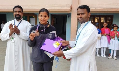 जामताड़ा । गत दिनों दिल्ली में आयोजित 68 वां राष्ट्रीय स्कूल गेम्स 2024 – 25 में गतका मार्शल आर्ट प्रतियोगिता में झारखंड राज्य स्कूल टीम में शामिल जामताड़ा जिले के सेंट जोसेफ स्कूल जामताड़ा के वर्ग दशम की छात्रा एवं सामर्थ्य सेल्फ डिफेंस & फिटनेस एकाडमी के खिलाड़ी प्राची गुप्ता ने कांस्य पदक प्राप्त करने में सफल हुए। प्राची गुप्ता आज स्कूल पहुंचने पर सेंट जोसेफ स्कूल जामताड़ा परिवार की और से सम्मान समारोह का आयोजन कर आज सुबह प्रार्थना सभा में प्राची गुप्ता के यह उपलब्धि पे स्कूल के प्राचार्य फादर जोसेफ तपन उपप्राचार्य फादर माइकल वरिय शिक्षिका बेला बंरला एवं स्कूल के शारीरिक शिक्षक और कोच दीपक दुबे ने प्राची गुप्ता के लिए को पुष्प गुच्छ, स्मृति चिन्ह एवं उपहार देकर उनका स्वागत एवं अभिनंदन कर उनका हौसला अफजाई कीये।
