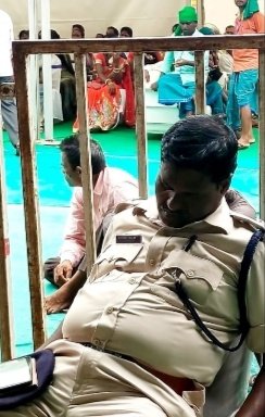 संयुक्त आदेश में गाँधी मैदान(सभा स्थल) के मुख्य पंडाल जोन-बी०में पु० नि० सुरेश प्रसाद ,पुलिस निरीक्षक सह थाना प्रभारी, साईबर थाना जामताड़ा को विधि व्यवस्था संधारण हेतु प्रतिनियुक्त किया गया था। परंतु पु०नि०सुरेश प्रसाद पासवान सह थाना प्रभारी , साईबर थाना,जामताड़ा विधि व्यवस्था डियूटी को तकसीम न करके मंच के सामने लोहे के बैरिकेटिंग के पास कुर्सी में बैठकर सोते हुए पाये गये।