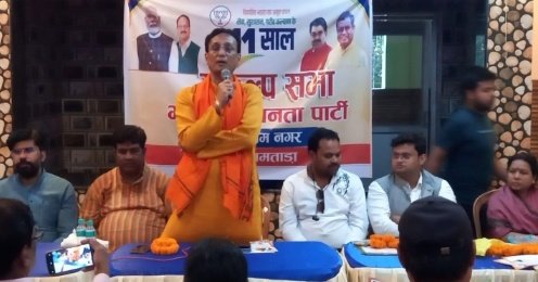 सभा में मौजूद कार्यकर्ताओं ने सेवा, सुशासन और गरीब कल्याण के लिए समर्पित रहने की शपथ ली और भारत को ‘विश्वगुरु’ बनाने के संकल्प को दोहराया।