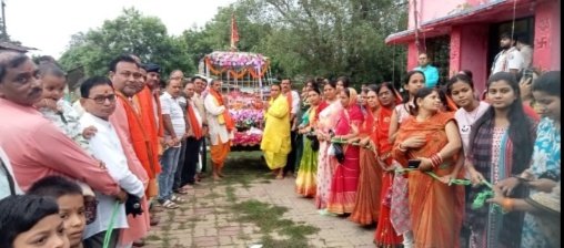 जहां मंदिर के पुजारी शंभू नाथ तिवारी ,राजेंद्र पांडे के द्वारा पूजा अर्चना कर आरती की गई।तथा भक्तों के बीच प्रसाद का वितरण किया गया। वही रथ का विश्राम किया गया।वही भगवान जगरनाथ ,बलराम , बहन सुभद्रा का प्रतिमां मंदिर प्रवेश कराया गया जहां मौसी बाड़ी में तीन दिनों तक विश्राम करेंगे। मौके पर राजेश कुमार सिंह, अरिंजय श्रीवास्तव,चितरंजन त्रिपाठी,अजय विश्वकर्मा, रिशु पटेल,नागेंद्र कोयरी,लक्ष्मी कांत,शिवू शर्मा,विकाश पटेल अजय सिंह,संजय झा,टिंकू सिंह,रघुवंश सिंह,अरुण कुमार शर्मा,रवि मिश्रा आदि थे।