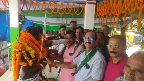 जामताड़ा । जिले के गांधी मैदान स्थित सिद्धू कान्हू की प्रतिमा पर धूमधाम और पारंपरिक वाध यंत्रों के साथ हूल दिवस मनाया गया। वही इस दौरान जे एम एम, राजद व अन्य राजनीतिक दल व सामाजिक संगठनों जे द्वारा सिद्धू कान्हू की आदमकद प्रतिमा पर माला अर्पण कर श्रद्धांजलि दिया। इसके अलावे उन्होंने कहा कि राष्ट्रीय अध्यक्ष एवं प्रदेश अध्यक्ष के निर्देश पर दो महान वीरों को याद कर रहे हैं। इस मौके पर जे एम एम के जिला कोषाध्यक्ष परेश यादव ने कहा कि वीर आदिवासी महानायकों ने अंग्रेजों हुकूमत के खिलाफ जल जंगल जमीन की रक्षा की थी। जो हमलोगों के लिए आज सुरक्षित है। वही हूल दिवस पर अपने विचार प्रकट करते हुए जिला अध्यक्ष दिनेश यादव ने कहा कि हूल क्रांति दिवस प्रतिवर्ष 30 जून को मनाया जाता है। झारखंड राज्य के संथाल प्रेरणा में संथाल हुल और संथाल विद्रोह के द्वारा अंग्रेजों को भारी नुकसान उठाना पड़ा था। सिद्धू तथा कान्हू दो भाई के नेतृत्व में 30 जून 1855 को साहिबगंज जिले के भोगनाडीह गांव से यह क्रांति की शुरुआत हुई थी। जिसमें दोनों भाइयो ने करो या मरो अंग्रेज हमारी माटी छोड़ो का नारा दिया था। आज हम सब दो महान स्वतंत्रता सेनानियों को याद कर काफी गौरवान्वित महसूस कर रहा हुं। 1855 में जमींदार महाजन और अंग्रेज कर्मचारियों के अन्य अत्याचार के खिलाफ संथाल की जनता ने एकबद्ध होकर उनके विरोध विद्रोह का बिगुल भूखा था इससे संथाल विद्रोह या संथाल हूल कहते हैं।