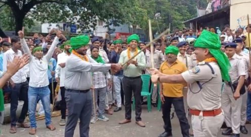 जामताड़ा । त्याग और बलिदान के पर्व मोहर्रम को लेकर विभिन्न समितियों के द्वारा जुलूस निकाली गई, भारी बारिश के बीच जामताड़ा नगर व ग्रामीण इलाकों से जुलूस सुभाष चौक चौक पहुँचे। सुरक्षा की चाक चौबंद व्यवस्था को लेकर उपायुक्त रवि आनंद के द्वारा दंडाधिकारी, पुलिस पदाधिकारी के साथ भारी संख्या में पुलिस बल की तैनाती की गई है। जुलूस के दौरान या अली या हुसैन के नारों से इलाका गूंज उठा। विधि व्यवस्था को लेकर सुभाष चौक में जिला दंडाधिकारी सह उपायुक्त जामताड़ा रवि आनंद , एस पी राजकुमार मेहता ने जायजा लिया। जहां मोहर्रम कमिटी के लोगों ने उपायुक्त और एस पी को पगड़ी पहनाकर स्वागत किया। इसके अलावा मुहर्रम जुलूस में इस्लाम धर्मावलंबियों के साथ साथ विभिन्न धर्म के लोग भी शामिल हुए। इस दौरान उपायुक्त और एस पी ने भी मोहर्रम के मौके पर खिलाड़ियों संग करतब दिखाए। वहीं कमिटी के खिलाड़ियों ने एक से बढ़कर एक हैरत अंगेज करतब दिखाए। कहा जाता है कि हजरत इमाम हुसैन अपने परिवार के साथ कर्बला के मैदान में शहीद हाे गए थे। लेकिन बातील के आगे अपने सिर नहीं झुकाया। इस्लाम को मानने वाले लोग हजरत हुसैन के याद में जुलूस के साथ मैदान-ए-जंग का दृश्य बड़े ही आकर्षक और अनोखे अंदाज में पेश किया। वहीं मीडिया से बात करते हुए एस पी राजकुमार मेहता ने कहा कि जिले के सभी मोहर्रम कमिटियों से निवेदन है कि मोहर्रम का त्योहार सहादत का त्यौहार है इस त्यौहार को शांति ढंग से मनाए। सभी स्थानों में पुलिस, प्रशासन की व्यवस्था की गई है, हमलोग भी विभिन्न स्थानों में जाकर जायजा ले रहे हैं। पूरी तरह से शांति माहौल में मोहर्रम का जुलूस निकाली गई है।
