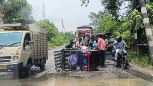कतरास । चलना भैया संभालकर नहीं तो हादसा का शिकार हो सकते हो ताज़ा उदाहरण तेतुलमारी के रेलवे गया पुल पर सोमवार को एक टोटो के पलटने से चालक घायल हो गया। यह हादसा तब हुआ जब टोटो कतरास से कर्कटशीट लेकर शक्ति चौक की ओर जा रहा था।तभी पुल में पानी भरने के कारण गड्ढे में टोटो का पहिया फंस गया, जिससे वाहन असंतुलित होकर पलट गया। हादसे में टोटो चालक को चोटें आईं। घटना के बाद राहगीरों ने घायल चालक को इलाज के लिए नजदीकी स्वास्थ्य केंद्र भेजा।स्थानीय लोगों ने बताया कि रेलवे गया पुल पर लंबे समय से जलजमाव और गड्ढों की समस्या बनी हुई है, लेकिन संबंधित विभागों द्वारा इस पर कोई ठोस कार्रवाई नहीं की गई, जो आए दिन दुर्घटनाओं का कारण बन रही है।स्थानीय प्रशासन और रेलवे विभाग से क्षेत्रवासियों ने जल्द मरम्मत और जलनिकासी की समुचित व्यवस्था की मांग की है।