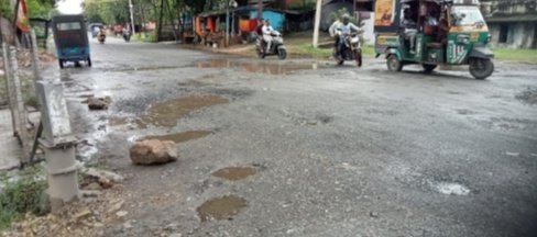 जब की इसी रास्ते आला अधिकारियों तथा जन प्रतिनिधियों का भी आना जाना लगा रहता।पर इस ओर किसी का ध्यान नहीं। इस बारे में स्थानीय लोगो का कहना है बराबर खतरा बना रहता है।छोटे मोटे गिरने की घटनाएं होती रहती है। पानी जमा होने के कारण गढ़े का दायरा भी बढ़ता जा रहा है।
