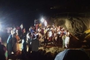 बलियापुर । बलियापुर थाना क्षेत्र के प्रधानखंता रेलवे स्टेशन के दक्षिण केबिन सिंदरी रेलवे लाइन के पास रेल अंडर पास कार्य के दौरान मंगलवार की रात लगभग आठ बजे मिट्टी का मलवा ऊपर से ढह गया। जिसमें वहां कार्य कर रहे चार मजदूर दब गए। घटना के बाद मजदूरों में अफरातफरी मच गई। मजदूर चिल्लाते हुए इधर-उधर भागने लगे। देर रात तक मलवा में दबे मजदूरों के शव को नहीं निकाला जा सका है। कुछ मजदूरों के सिर और हाथ मिट्टी में दबे दिख रहे हैं।