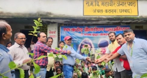 कतरास : एक करोड़ पौधारोपण महा अभियान कार्यक्रम तीसरे दिन जय धरती मां फाउंडेशन के संस्थापक रवि कुमार निषाद ने मध्य विद्यालय महावीर अंगारपथरा के प्रधानाध्यापक सरोज कुमार को श्रीफल प्रदान कर किया । बच्चों ने विद्यालय परिसर में एक-एक पौधे लगाए और पौधे के संरक्षण के लिए शपथ ग्रहण किया। तत्पश्चात नया प्राथमिक विद्यालय पत्थरकोठी अंगारपथरा में प्रधानाध्यापक चेतलाल महतो को पीपल का पौधा प्रदान कर बच्चों द्वारा एक-एक पौधा लगाया गया। तत्पश्चात चरकीटाड महुदा स्थित उत्क्रमित उच्च विद्यालय चरकी टांड़ में छात्र-छात्राओं के साथ पौधारोपण का कार्यक्रम किया गया जहां विद्यालय के प्रधानाध्यापक इदू पासवान उपस्थित थे ।