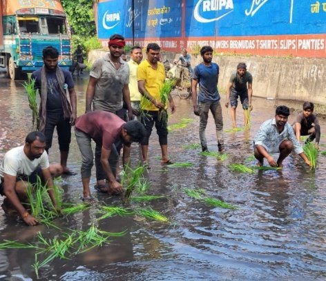 कतरास । गया रेल पुल तेतुलमारी में जलजमाव से परेशान ग्रामीण युवकों व राहगीरों ने धन रोपनी कर जिला प्रशासन व प्रतिदिन उक्त मार्ग से स्थानीय विधायक, बी सी सी एल के अधिकारियों व जिला प्रशासन के लोगो के आवागमन के बाद जल जमाव व जर्जर सड़क की मर्रामती के दिशा में कार्य हो सके।धन रोपनी करने वालो में बिक्रम महतो, युगल महतो, शंकर कुमार, बबलू महतो,राजकुमार महतो,अर्जुन महतो,राहुल यादव,बम महतो, दिनेश कुमार,विशाल कुमार सहित अन्य ग्रामीण युवक व सामाजिक कार्यकर्ता मौजूद थे।