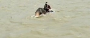 बिहार । बिहार में वैशाली के राघोपुर में महावत को अपनी पीठ पर बिठाकर हाथी का तैरकर गंगा पार करने का वीडियो सामने आया है। मंगलवार को गंगा नदी में अचानक पानी बढ़ने से राघोपुर क्षेत्र में हाथी के साथ महावत फंस गया था। इसके बाद महावत ने हाथी के साथ गंगा को पार करने का फैसला लिया। वह उफनती गंगा के बीच हाथी की पीठ पर बैठकर दूसरे किनारे तक पहुंचा।