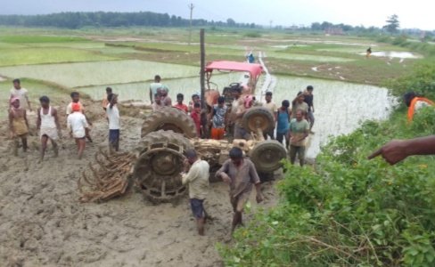 इचाक । इचाक थाना क्षेत्र के इचाक बरकट्ठा मार्ग पर मोक्तमा स्थित छबेलवा में गुरुवार को एक ट्रैक्टर सड़क से अनियंत्रित होकर खेत में पलट गया। घटना में ट्रैक्टर में बैठे मोक्तमा गांव निवासी नरेश मेहता के पुत्र रौशन कुमार (उम्र 21वर्ष)और विनय मेहता के पुत्र विशाल कुमार (उम्र 20 वर्ष) गंभीर रूप से घायल हो गए। खेत में अचानक ट्रैक्टर पलटने से अफरा तफरी मच गई। खेतों में रोपा कर रहे किसान फौरन दौड़े और दोनों युवक को बाहर निकाल कर बेहतर इलाज के लिए हजारीबाग के एक निजी अस्पताल ले गए । फिलहाल दोनों युवक की स्थिति खतरे से बाहर हैं। मिली जानकारी के अनुसार रौशन अपने ट्रैक्टर से खेत की जुताई कर वापस अपने घर आ रहा था। उसके साथ विशाल भी ट्रैक्टर में बैठा था। रास्ते में छबेलवा के पास ट्रैक्टर के सामने अचानक एक मवेशी दौड़ गया। जिसे बचाने के लिए रौशन ने अचानक ट्रैक्टर में ब्रेक लगाया। जिसके बाद ट्रैक्टर सड़क से फिसलकर सीधे गहरे खेत में पलट गया। और उक्त दोनों युवक उसकी चपेट में आ गए।