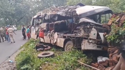 देवघर । मंगलवार की सुबह झारखंड के देवघर से एक भीषण सड़क दुर्घटना की खबर सामने आई है । जहां सड़क हादसे में 6 कांवड़ियों की दर्दनाक मौत हो गई, जबकि 24 कांवड़िया घायल है । घटना के बाद बस के परखच्चे उड़ गए । वहीं हादसे के बाद क्षेत्र में अफरा तफरी मच गई । उपायुक्त सह जिला दंडाधिकारी श्री नमन प्रियेश लकड़ा द्वारा जानकारी दी गई है कि सुबह लगभग 05:30 बजे मोहनपुर प्रखंड के जमुनिया चौक के पास कांवड़ियों से भरी बस की गैस से लदे टैंकर से जोरदार टक्कर हो गई । दुर्घटना में घायल श्रद्धालुओं को सदर अस्पताल में चिकित्सकों की निगरानी में स्वास्थ्य सुविधा उपलब्ध कराई जा रही है। दुर्घटना में 06 श्रद्धालुओं की मृत्यु हुई है और 24 श्रद्धालु घायल हुए है, जिनमें 08 श्रद्धालुओं का एम्स में इलाज चल रहा है। शेष श्रद्धालु सदर अस्पताल में इलाजरत है।
