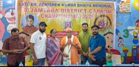 जामताड़ा । जिला कैरम एसोसिएशन एवं अभिषेक भैया मेमोरियल फाउंडेशन के संयुक्त तत्वाधान में 10 वीं जिला स्तरीय कैरम प्रतियोगिता का आयोजन नगर स्थित माय छोटा प्ले स्कूल आजाद पाड़ा दुमका रोड में तीन दिवसीय कैरम प्रतियोगिता का विधिवत शुभारंभ मुख्य अतिथि रामकृष्ण मठ जामताड़ा के महंत स्वामी गोविंद महाराज, अभिषेक भैया मेमोरियल फाउंडेशन के मुख्य संरक्षक श्रीमती चमेली देवी, स्टेट कैरम एसोसिएशन झारखंड के कार्यकारिणी सदस्य दीपक दुबे , जामताड़ा जिला कैरम एसोसिएशन के चैयरमेन शिवनाथ घोष, अध्यक्ष रणदीप गुप्ता, हॉकी जामताड़ा के सचिव डॉ.भास्कर चंद एवं प्रदीप कु.दुबे ने संयुक्त रूप से सर्व प्रथम स्वर्गीय डॉ अभिषेक झा के चित्र पर माल्यार्पण एवं श्रद्धा सुमन अर्पित के साथ कैरम बोर्ड में शॉर्ट लगाकर किये। इस अवसर पर स्वामी गोविंद महाराज ने कैरम खिलाड़ियों को अपने संबोधन में कहें की स्वामी विवेकानंद का एक वचन है कि हर बच्चे को सर्वप्रथम खेल के मैदान से जुड़ने की आवश्यकता है और उसे फुटबॉल खेलने की जरूरत है क्योंकि खेल से ही मनुष्य के स्वस्थ शरीर का निर्माण हो सकता हैं। स्वस्थ शरीर में ही स्वस्थ मन का वास होता है जब हम शारीरिक रूप से स्वस्थ होंगे तो हम अपने जीवन के हर कार्य को बेहतर से बेहतर तरीके से करने का लिए प्रेरित होंगे इसलिए हर अभिभावक का दायित्व बनता है कि वह कम से कम अपने बच्चों को किसी न किसी खेल से जरूर जोड़ें कैरम खेल एक का मानसिक विकसित करने का खेल है जिससे कि हम मन को एकाग्रता कर सकते हैं। आज के यह कैरम खेल आयोजन मंडली के द्वारा बहुत ही बेहतरीन आयोजन है खिलाड़ियों को आगे बढ़ाने के लिए एक सही प्लेटफॉर्म है।