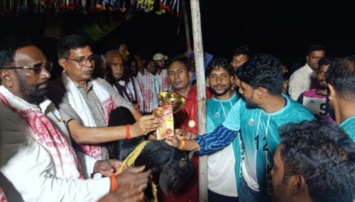 इचाक । प्रखंड के बोधी बागी मैदान में गीतांजलि युवा क्लब कुरहा की ओर से आयोजित 10 दिवसीय नॉक और फुटबाल टूर्नामेंट का फाइनल मैच शुक्रवार को खेला गया। उद्घाटन मुख्य अतिथि जिला परिषद अध्यक्ष उमेश प्रसाद मेहता, स्वतंत्रता सेनानी विचार मंच के प्रदेश अध्यक्ष बटेश्वर प्रसाद मेहता एवं आंदोलनकारी और अधिवक्ता चंद्रनाथ भाई पटेल ने कीक मारकर किया। इस दौरान सेमी फाइनल में अमनारी और तेतरिया की टीम खेल हुई जिसमें आमनारी की टीम विजय हुई। फाइनल मैच चंदा और अमनारी के बीच खेला गया। जिसमें दोनों टीम ने अपनी पुरजोर प्रदर्शन किया। जिस कारण मैच ड्रा हो गया। इसके बाद दोनों टीमों के बीच पेनल्टी शूट मैच खेला गया। जिसमें दोनों टीमों को बराबर अवसर दी गई। पेनल्टी बॉल में चंदा की टीम अमनारी की टीम पर 3/1 से विजय पाकर खिताब पर कब्जा जमा लिया। अतिथियों ने विजेता टीम को बड़ा बकरा और 2500 नकद जबकि दूसरे उपविजेता टीम को छोटा बकरा और ₹1100 नकद देकर हौसला के साथ दोनों टीमों को ट्राफी देकर सम्मानित किया। अतिथियों ने कहा कि फुटबॉल खेलने से शारीरिक मानसिक और बौद्धिक विकास होता है। यह भी कहा कि इचाक प्रखंड पूर्व से ही इन क्षेत्रों में अव्वल रहा है यह भी कहा कि खेल को खेल की भावना से खेलना चाहिए मंजिल अवश्य मिलेगी। इसे सफल बनाने में मधुसूदन प्रसाद मेहता, उपाध्यक्ष विकास कुमार, कोषाध्यक्ष विकास कुमार एवं बबलुकांत मेहता, सचिव विक्की कुमार, आशीष कुमार, रविकांत मेहता, धीरज कुमार, अनिकेत कुमार, राहुल कुमार, अमन कुमार, तुषार कुमार, मनीष कुमार और सनी कुमार समेत सभी सदस्यों का सराहनीय योगदान रहा। मौके पर सेवा निवृत प्रोफेसर बी के झा, स्थानीय मुखिया प्रतिनिधि राकेश कुमार मेहता, जेडीयू नेता अर्जुन मेहता, संसद प्रतिनिधि ओमप्रकाश मेहता, प्रो ब्रजकिशोर मेहता, युवा नेता गौतम कुमार, उमेश प्रसाद दांगी, भाजपा नेता मुनेंद्र मेहता, समाजसेवी लीलो प्रसाद मेहता, शशि मेहता, अविनाश कुमार, टिंकू कुमार, अर्जुन मेहता, सेवा निवृत सैनिक रविन्द्र प्रसाद सिंह, केशव प्रसाद मेहता, भीम मेहता समेत दर्जनों लोग मौजूद थे।