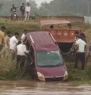 जामताड़ा । समाहरणालय देवघर चितरा मुख्य मार्ग पर मंगलवार देर रात भारी बारिश के बाद दक्षिणबहाल पुल के पास बना अस्थायी रास्ता धंस गया, जिससे एक वैगन आर कार पानी के तेज बहाव में बह गई। बताया जा रहा है कि इस कार में पाँच लोग सवार थे, हालांकि ग्रामीणों ने तुरंत मदद कर चार लोगों को सुरक्षित बाहर निकाल लिया, लेकिन एक व्यक्ति अभी भी लापता है। मौके पर पुलिस और प्रशासन की टीम पहुँच है। देवघर से NDRF की टीम को बुलाकर तलाश अभियान शुरू कर दिया गया है जानकारी के अनुसार देवघर–चितरा मुख्य मार्ग पर स्थित दक्षिणबहाल पुल पहले से ही क्षतिग्रस्त था। पुल की खराब स्थिति को देखते हुए स्थानीय लोगों ने करीब एक सप्ताह पहले अस्थायी रास्ता बना लिया था। लेकिन इसी बीच मंगलवार रात करीब साढ़े बारह बजे हुई भारी बारिश के बाद यह अस्थायी एप्रोच रोड धंस गया। जामताड़ा थाना प्रभारी संतोष कुमार सिंह ने बताया कि बचाव कार्य जारी है और लापता व्यक्ति की तलाश की जा रही है। जानकारी के अनुसार कार में जामताड़ा डीटीओ कार्यालय के चालक मिथुन कुमार और आउटसोर्सिंग कर्मी वेद प्रकाश सहित पाँच लोग सवार थे। ये रांची से जॉइनिंग के लिए आ रहे थे। हादसे में वेद प्रकाश लापता है। ग्रामीणों में घटना को लेकर भारी आक्रोश है। उनका कहना है कि पुल लंबे समय से क्षतिग्रस्त था, लेकिन मजबूरी में उसी अस्थायी रास्ते से वाहन चल रहे थे। प्रशासन ने राहत और बचाव कार्य तेज कर दिया है।