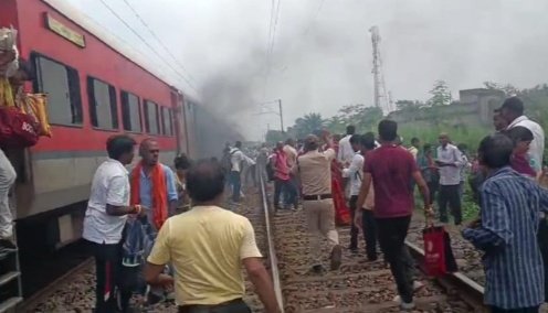 जामताड़ा । जिले के कासितांड रेलवे स्टेशन के पास आज दोपहर लगभग 12 बजे डाउन लाइन बक्सर-टाटा एक्सप्रेस ट्रेन में अचानक शॉर्ट सर्किट से धुंआ उठने लगा। घटना होते ही ट्रेन के ड्राइवर की सूझबूझ से ट्रेन को तत्काल रोक दिया गया। तीसरी बोगी में अचानक धुआं और आग की लपटें दिखाई दीं। रेलवे स्टाफ ने फायर एक्सटिंग्विशर की मदद से आग पर काबू पाया। आग लगने की वजह ट्रेन की बोगी के नीचे छक्का (अंडर गियर) से उठती चिंगारी बताई जा रही है। अचानक धुंआ निकलते ही यात्रियों में अफरा-तफरी का माहौल बन गया। हालांकि राहत की बात यह रही कि घटना में कोई हताहत नहीं हुआ। रेलवे कर्मचारियों की तत्परता से समस्या पर काबू पाया गया और करीब आधे घंटे बाद ट्रेन को पुनः सुरक्षित रूप से रवाना कर दिया गया। इस घटना के कारण यात्रियों में दहशत तो रही, लेकिन समय रहते स्थिति को संभाल लेने से बड़ी दुर्घटना टल गई। यात्रियों ने बताया कि कासितांड रेलवे स्टेशन के पास अचानक बक्सर टाटा एक्सप्रेस ट्रेन में आग लगनी की घटना घटी है, यात्रियों में अफरा तफरी का माहौल बन गया। ट्रेन में आग की घटना से कोई हताहत नहीं हुई है। गनीमत यह भी रही कि अप लाइन में कोई ट्रेन नही थी नही तो एक बड़ी दुर्घटना हो सकती थी।