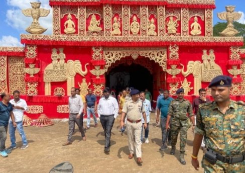 जामताड़ा । आज उपायुक्त सह जिला दंडाधिकारी रवि आनंद एवं पुलिस अधीक्षक राज कुमार मेहता द्वारा जामताड़ा नगर क्षेत्र एवं मिहिजाम नगर परिषद क्षेत्र अंतर्गत विभिन्न पूजा पंडालों का अधिकारियों संग निरीक्षण कर व्यवस्थाओं का जायजा लिया। निरीक्षण के क्रम में उपायुक्त रवि आनंद ने पूजा पंडाल की व्यवस्था, मजबूती, सीसीटीवी सर्विलेंस आदि बिंदुओं का अवलोकन किया। उन्होंने फर्स्ट एड की उपलब्धता, अग्निशामक उपकरणों की कार्यशीलता, विद्युत तारों की सुरक्षित और पर्याप्त ऊंचाई पर वायरिंग आदि की निगरानी रखने का निर्देश दिया, ताकि कोई अनहोनी न होने पाए। उन्होंने कहा कि सभी पूजा पंडाल आयोजक यह सुनिश्चित करेंगे स्वयंसेवक निर्धारित ड्रेस व आई-कार्ड के साथ तैनात रहें, जिससे भीड़ प्रबंधन में सुविधा हो। वहीं उपायुक्त ने एंट्री एवं एग्जिट प्वाइंट को स्पष्ट और सुगम रखने का निर्देश दिया, ताकि किसी प्रकार की विपरीत स्थिति उत्पन्न नहीं हो। इसके अलावा उन्होंने यातयात प्रबंधन, भीड़ प्रबंधन के संदर्भ में आवश्यक दिशा निर्देश दिया। वहीं उन्होंने जिलावासियों से अपील किया कि शांतिपूर्ण और सौहार्दपूर्ण वातावरण में दुर्गा पूजा मनाएं। प्रशासन और पुलिस के साथ सहयोग करें, ताकि दुर्गा पूजा सुरक्षित और शांतिपूर्ण वातावरण में संपन्न हो सके।