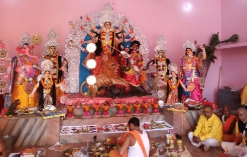 इचाक: प्रखंड मुख्यालय से लगभग 11 किमी दूर देवकुली शिवमन्दिर के निकट हर वर्ष शारदीय दुर्गा पूजा का आयोजन ग्रामीण बड़े धूमधाम से करते हैं। यहां का पूजा पंडाल और भव्य पूजा व्यवस्था पूरे प्रखंड में आकर्षण का केंद्र बना रहता है। वहीं शारदीय नवरात्र के दौरान शोभा यात्रा, कलश यात्रा, संध्या महाआरती, रात्रि में प्रवचन और जागरण जैसे कार्यक्रमों में लोग दूर दूर से शामिल होने आते हैं। पूर्व मुखिया महेंद्र दास, ग्रामीण रामकुमार सिंह, छत्रधारी महतो, जगन ठाकुर, जगरनाथ महतो ने बताया कि देवकुली गांव में व्यवसाई छेदी साव ने दुर्गा पूजा प्रारंभ किया था। उन्होंने बताया कि वर्ष 1962 में गांव में भयंकर महामारी फैली थी। जिसमें मनुष्य से लेकर पशुओं तक में बीमारी फैल गई। वहीं गांव में सुखा पड़ने से अनाज का उत्पादन भी लगभग ठप्प हो गया था। उस समय शिवाला सिंह उर्फ बडका बाबू ग्राम प्रधान हुआ करते थे। गांव का पंचायत उन्हीं के घर में होता था। बगैर उनके आदेश से गांव में कोई नया काम नहीं करने की परंपरा थी। गांव के एक व्यवसाई छेदी साव हुआ करते थे। उन्होंने दुर्गा पूजा करने के लिए ग्राम प्रधान से कई बार अनुमति मांगी थीं लेकिन उन्होंने इस पर ध्यान नहीं दिया। लेकिन जब गांव में महामारी और सूखा पड़ने लगा तो उन्होंने छेदी साव को पूजा करने की अनुमति दे दी। लेकिन किसी ने आर्थिक सहयोग नहीं किया। छेदी साव जुनूनी और और पूजा पाठ में काफी रुचि रखने वाले व्यक्ति थे। उन्होंने शिवमन्दिर के निकट घोरान घोरकर और मिट्टी का मड़ैया बनाकर और उसमें मां दुर्गा की प्रतिमा स्थापित कर पूजा प्रारंभ किया। गांव के पुरोहित परमेश्वर पाण्डेय, नारायण पांडेय, विष्णु पांडेय और अर्जुन पांडेय संयुक्त रूप से पूजा अनुष्ठान करवाते थे। मां दुर्गा का पूजा होने से ग्रामीणों को महामारी और सूखा से राहत मिलने लगा। फसलें अच्छी हुई और गांव का उत्तरोत्तर विकास होने लगा। धीरे धीरे पूजा में ग्रामीण शामिल होने लगे और पूजा पंडाल मिट्टी के मड़ैया से ईंट का खपरैल और फिर वर्ष 2019 में अत्याधुनिक सुविधा वाला दुर्गा मंडा बन गया। वर्तमान में आचार्य श्रीनिवास पांडेय, कृष्णा पांडेय और पुरुषोत्तम पांडेय के संयुक्त नेतृत्व में पुजारी धनेश्वर महतो पूजा अनुष्ठान को विधिवत संपन्न करवा रहे हैं। इस नवरात्र में 24 सितंबर को कलश यात्रा के उपरांत प्रतिदिन प्रवचन कार्यक्रम आयोजित किया जा रहा है। जहां वृंदावन से आए शंभूनाथ शास्त्री और प्रिया किशोरी शास्त्री द्वारा श्रीमद्भागवत गीता का प्रवचन सुनने दूर दूर से श्रद्धालु आ रहे हैं। तो वहीं दुर्गा पूजा महासमिति के अध्यक्ष नंदकिशोर महतो, सचिव बिंदेश्वर महतो, कोषाध्यक्ष अनिल कुशवाहा, राजेंद्र कुशवाहा, संतोष कुमार साव, योग