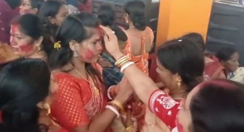 जामताड़ा । दुर्गा पूजा का महापर्व आज विजयादशमी के साथ सम्पन्न हो गया। जिलेभर में माँ दुर्गा की प्रतिमाओं का श्रद्धा और आस्था के साथ विसर्जन की जा रही है, इससे पूर्व महिलाओं ने पारंपरिक रीति-रिवाजों के तहत माँ दुर्गा को सिंदूर खेला के साथ भावभीनी विदाई दी। सिंदूर खेला के दौरान महिलाओं ने एक-दूसरे को भी सिंदूर लगाकर खुशहाली और सौभाग्य की कामना की।