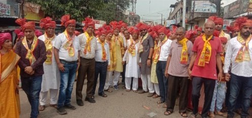 झरिया । अग्रोहा नरेश महाराजा अग्रसेन जी के 5150 वीं जयंती पर मारवाड़ी सम्मेलन झरिया द्वारा आयोजित अग्रसेन जयंती पखवाड़ा 5 अक्टूबर 2025 दिन रविवार की सुबह 11 बजे झरिया के श्याम मंदिर प्रांगण से भव्य व विशाल शोभा यात्रा निकाली गई । जो श्री श्याम मंदिर प्रांगण से निकलकर झरिया लाल बाजार, लक्ष्मीनिया मोड, सब्जी पट्टी, बाटा मोड़, मेन रोड, चार नम्बर, धर्मशाला रोड होते हुए अग्रवाल धर्मशाला पहुंची । शोभा यात्रा में काफी संख्या में धनबाद जिला के श्रद्धालु व गणमान्य लोग शामिल हुए । अग्रसेन जी महाराज के जयकारों से गुंजा झरिया नगर अग्रसेन जी महाराज के लिए बज रहे भजनों के संगीत में श्रद्धालु झूमते गाते रहे । क्या बच्चे क्या बूढ़े क्या महिलाएं और क्या जवान सभी अग्रसेन जी महाराज का जयकारा लगाते हुए थिरक रहे थे । शोभा यात्रा में विभिन्न तरह की झांकियां निकाली गई, जिसमें झारखंड के संस्कृति की झलक, राजस्थान के संस्कृति की झलक, व महाराष्ट्र में गणेश वंदना की भी झलक देखने को मिली । साथ ही महाराजा अग्रसेन जी और उनके 18 पुत्रों का झांकी लोगों के बीच आकर्षण का केंद्र बनी रही । सम्मेलन द्वारा संचालित संस्थाओं के सभी स्कूलों व कॉलेज के वाद्य यंत्र बजाते हुए वहां के छात्र चल रहे थे। महाराजा अग्रसेन जी की झांकी देखते ही बन रही थी । कार्यक्रम की शुरुआत मारवाड़ी सम्मेलन झरिया अध्यक्ष श्री राजकुमार अग्रवाल जी ने महाराजा अग्रसेन जी का विधिवत पूजन कर आरंभ किया । वही रामगढ़ से आई 22 सदस्य बरसात ग्रुप पार्टी के द्वारा बजाये गये सुनामी ने लोगों का मन मोह लिया । लोग घरों से बाहर आकर शोभायात्रा और झांकियों का आनंद ले रहे थे । मौके पर श्री राजकुमार अग्रवाल, धनबाद के पूर्व मेयर चंद्रशेखर अग्रवाल, डॉ. ओपी अग्रवाल, द्वारिका प्रसाद गोयनका, नथमल अग्रवाल, सीए दीपक अग्रवाल, ललित अग्रवाल, दीपक अग्रवाल, प्रमोद जालूका, ललित कटेसरिया, अरुण बंसल, जगदीश तुलस्यान, रमेश रिटोलिया, महेश जालूका, गणेश अग्रवाल, रघुवीर गोयल, अजय भरतिया, सत्यनारायण भोजगडिया, ओम प्रकाश बजाज, बसंत गोयल, अनिल खरकिया, अनिल खेमका, नरेश अग्रवाल, कृष्णकांत अग्रवाल, मोहित अग्रवाल, अमित अग्रवाल, चंद्र प्रकाश चौंखानी, विनोद अग्रवाल, विनोद मोदी, अंकुर अग्रवाल, शिव शंकर खंडेलवाल, अशोक दारूका, शिवकुमार अग्रवाल, अजय अग्रवाल, चंद्र प्रकाश चौखनी, कृष्ण कुमार शंघाई, मीनू गोयल, किरण अग्रवाल, जया अग्रवाल, शीला चौखानी, सुमन अग्रवाल, किरण खरकिया, बीना अग्रवाल, नीता अग्रवाल आदि लोग उपस्थित थे ।